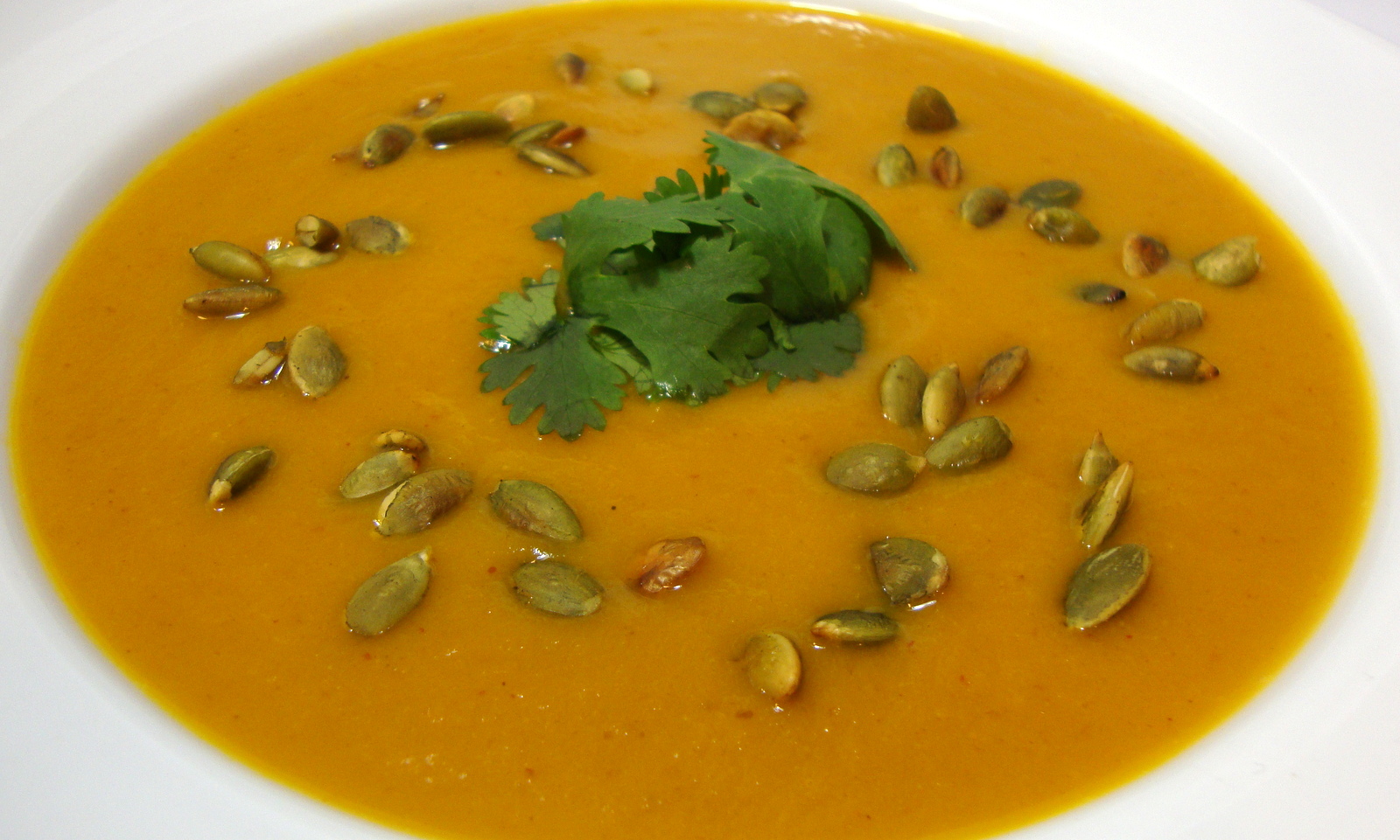 Spicy Chipotle Pumpkin Soup with Toasted Pepitas