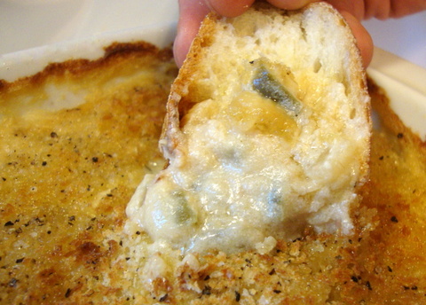 Serve hot with warm tortilla chips, chunks of crusty bread or crackers. The dip will be saucy when very hot but will thicken substantially as it cools.