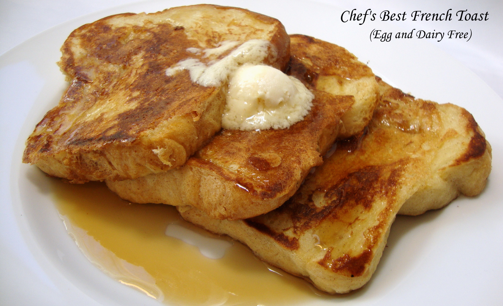 French toast is a classic breakfast and brunch favorite. My egg and dairy-free version consists of sliced bread dipped in a special eggless egg batter, pan-fried until golden brown and garnished with toppings of your choice.